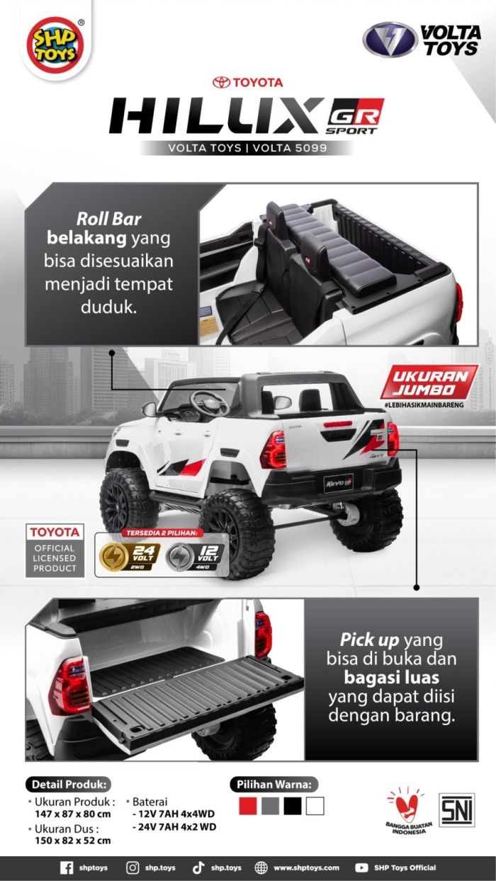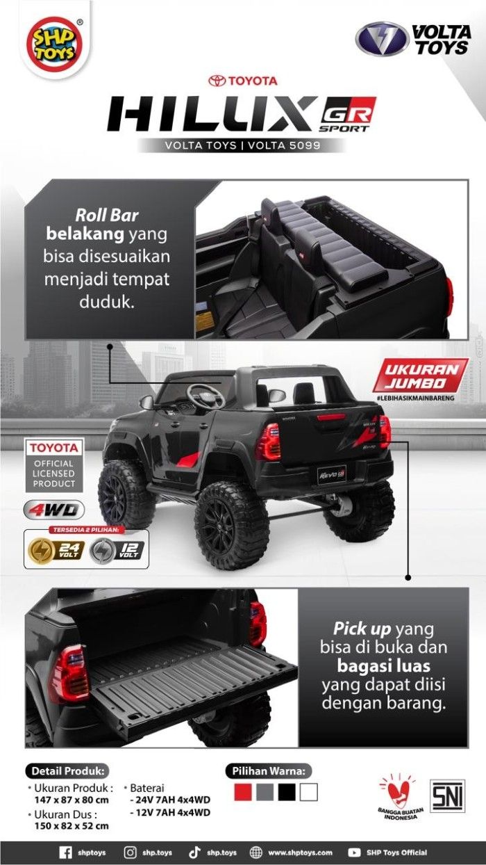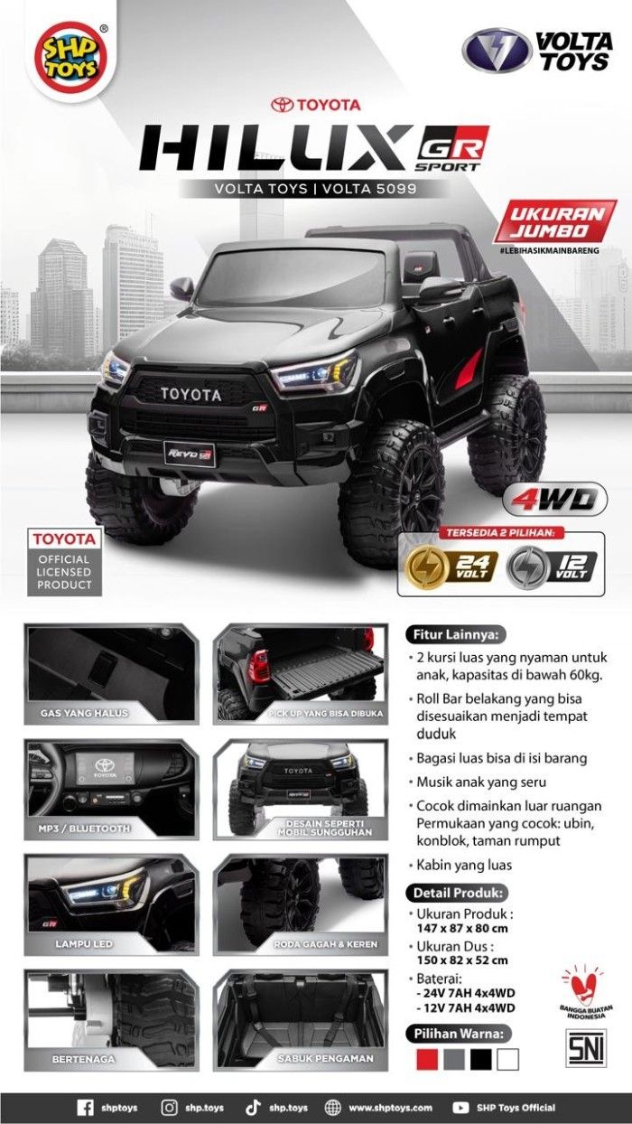 Mainan Mobil Aki Anak Remote Control Volta 5099 V5099 Toyota Hilux GR Sport Official Licensed - ABU 12 VOLT
