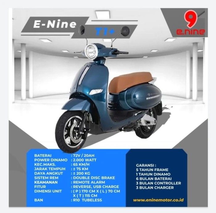 Sepeda Motor Listrik Vespa E Nine T1+ Scooter Matic 2000 Watt