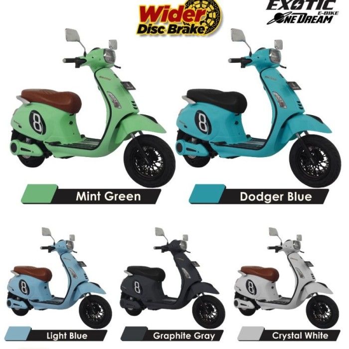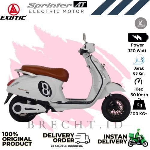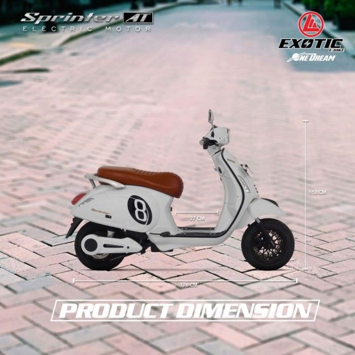 Sepeda Motor Listrik Vespa SPRINTER AT Exotic E Motor 1200 watt Lampu Kotak - Biru Muda