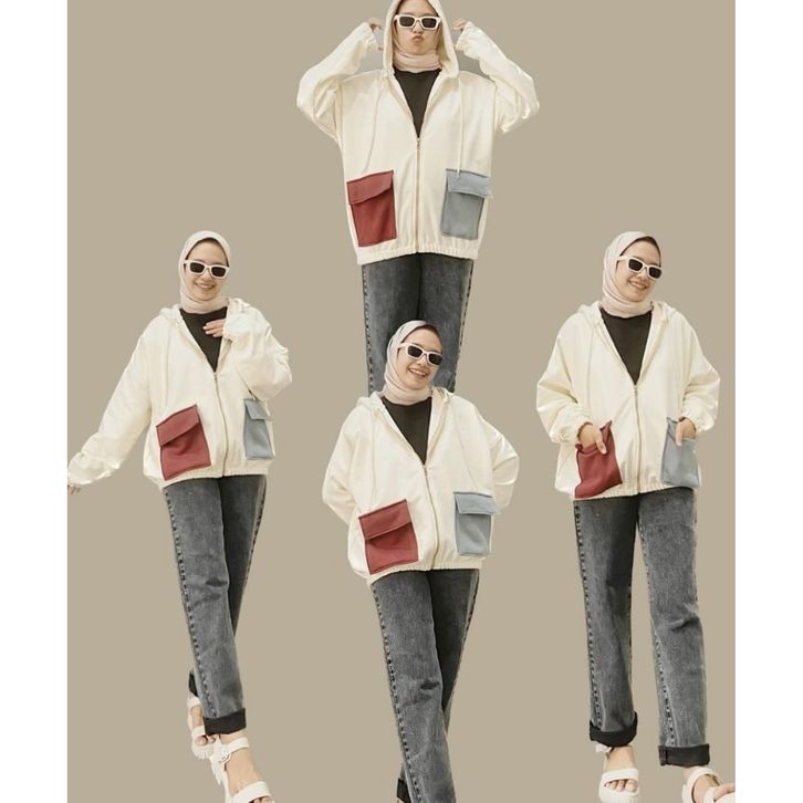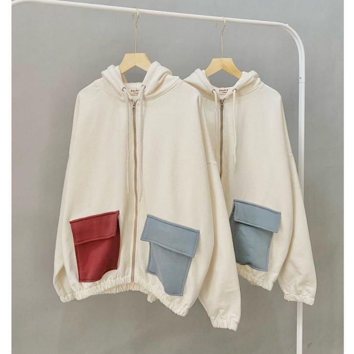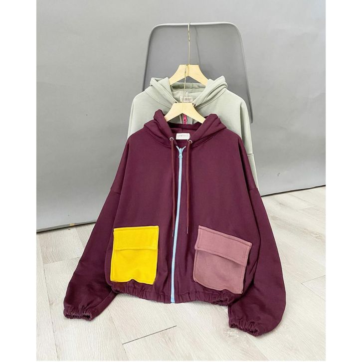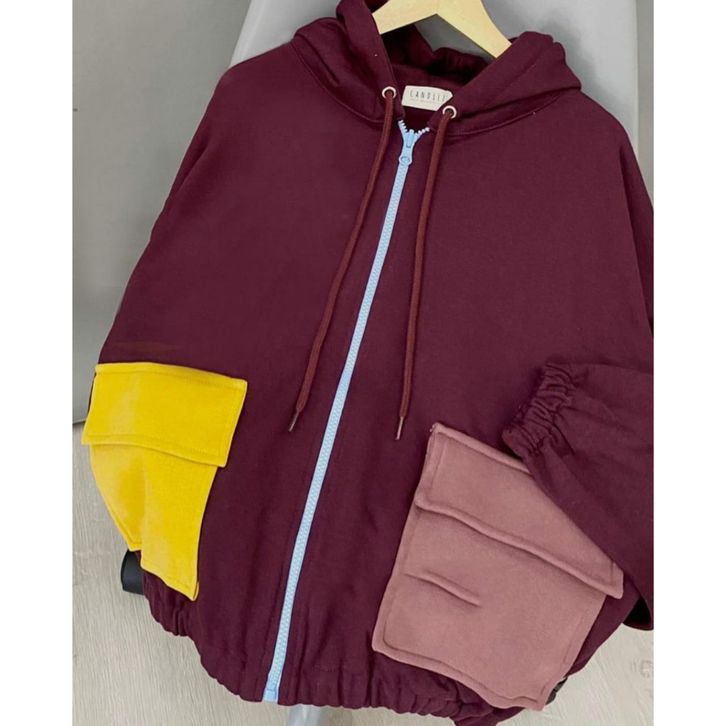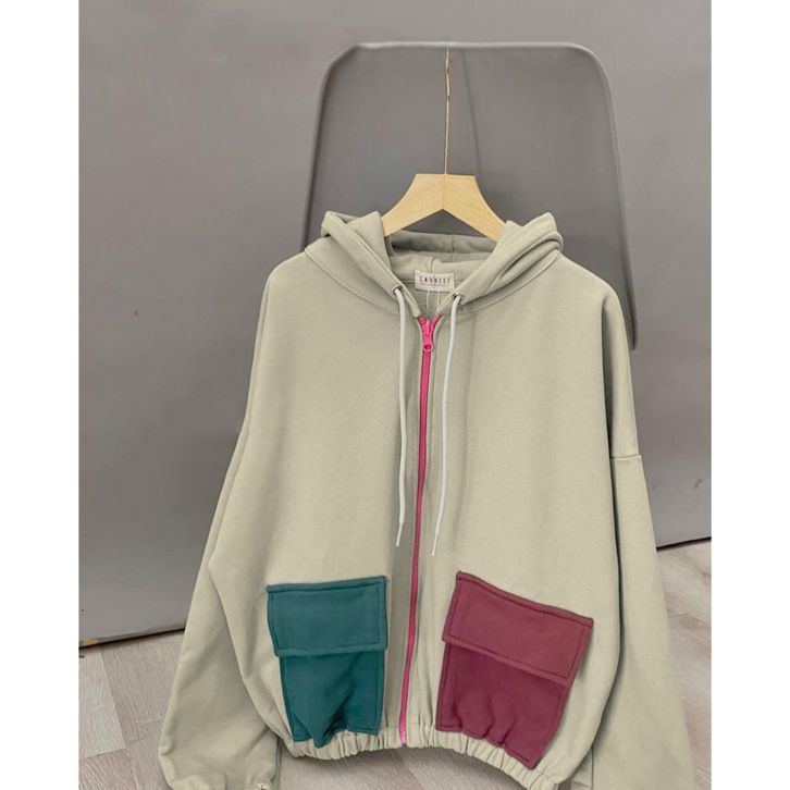 KIRA POCKET HOODIE ZIPPER JAKET OVERSIZE - SIZE XXL - JAKET HOODIE OVERSIZE