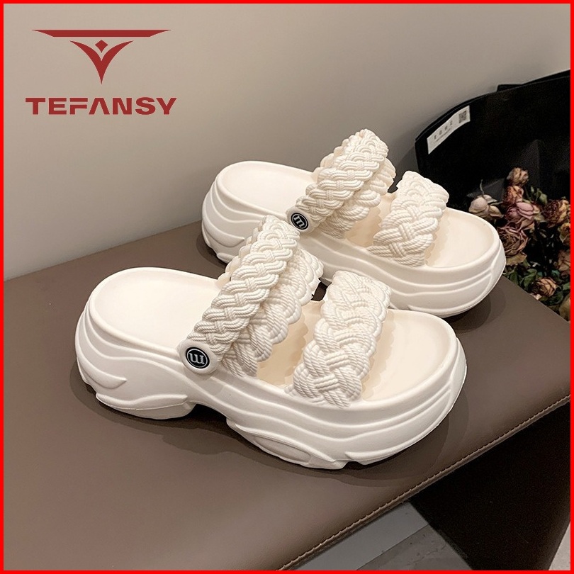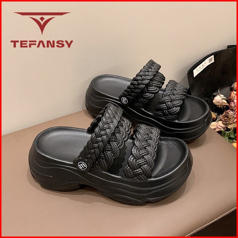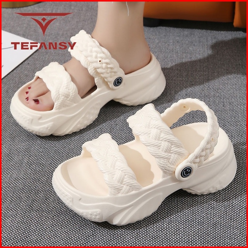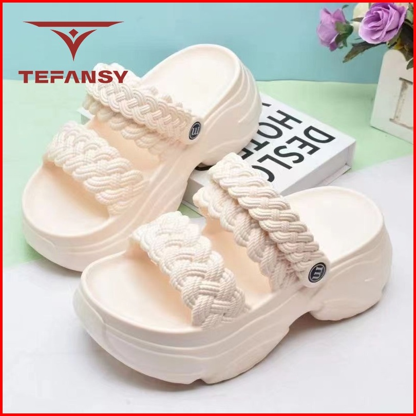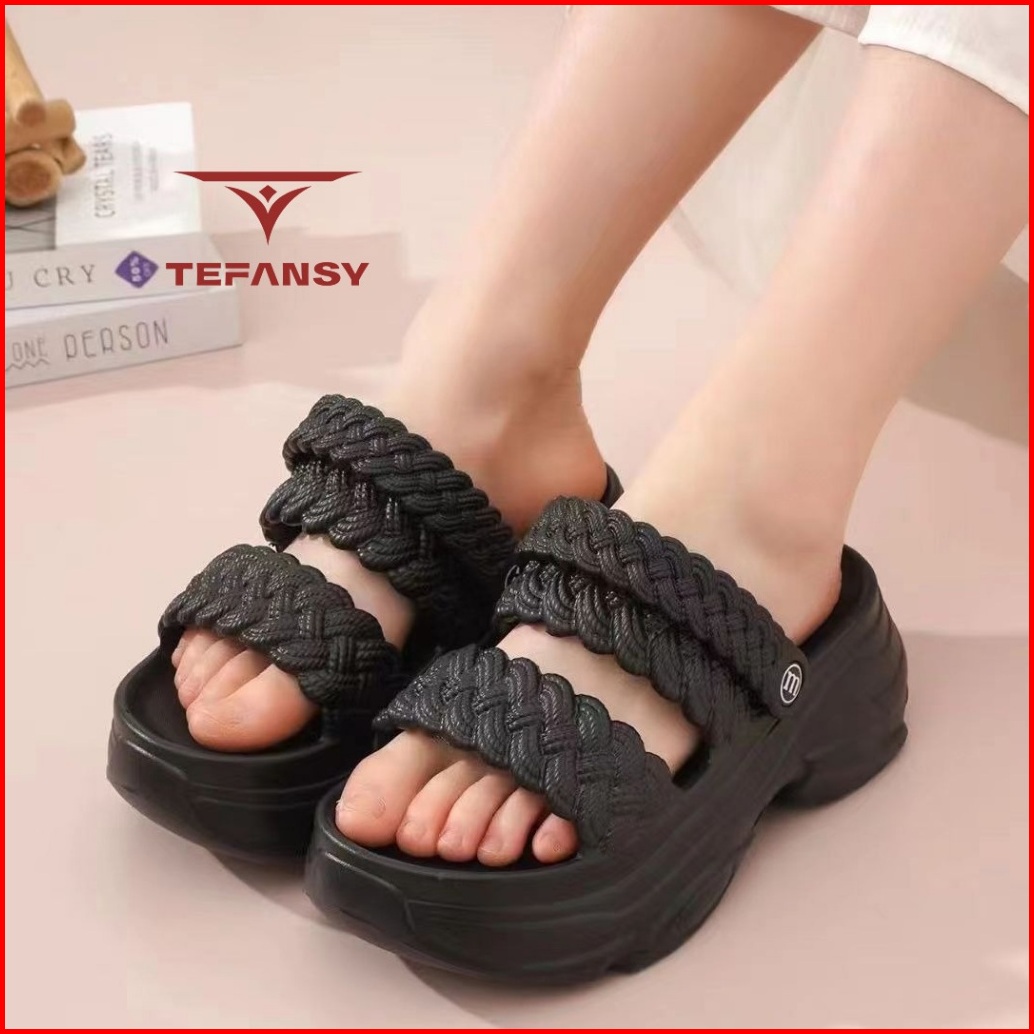 Tefansy Sandal Wanita Karet Jelly Wedges Tebal Bahan Elastis Empuk Tali Belakang Motif Double Strap