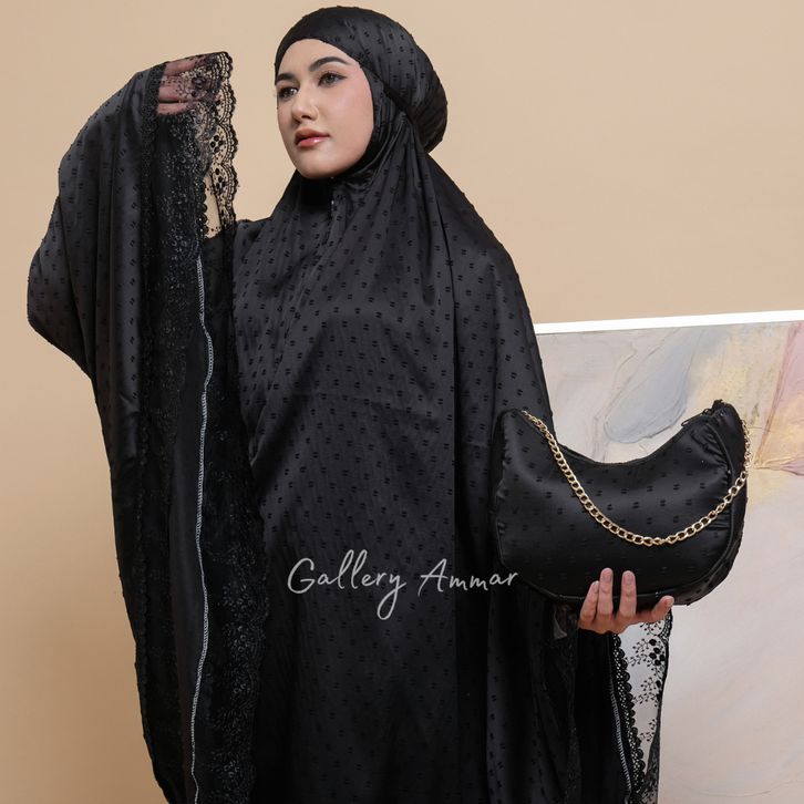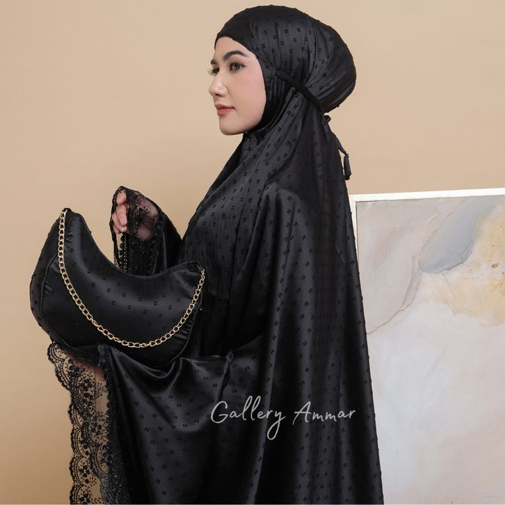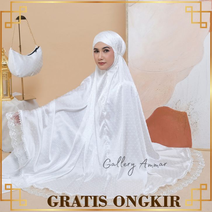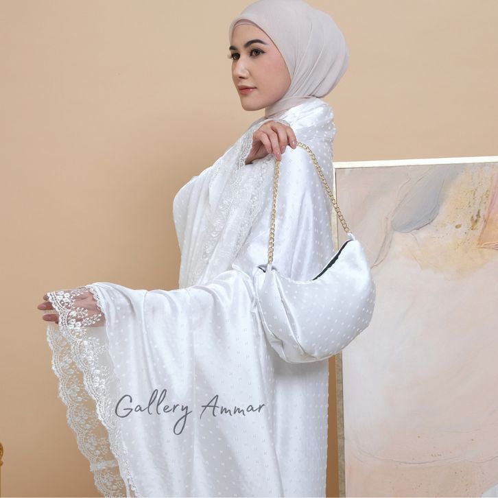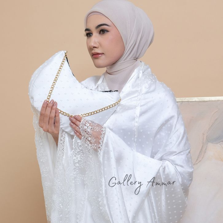 AMMAR - Mukena Dewasa Terbaru Uragiri Kaisha Series 2in1 Mukena Silky Premium Renda Mewah Mukena Putih Jumbo Traveling