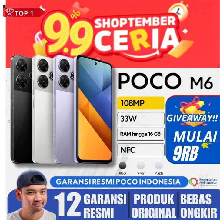 [Mall] Original POCO M6 8GB/256GB | Kamera utama 108 MP kelas pro Helio G91-Ultra x7 Pro F7 c75 c71 Official Store