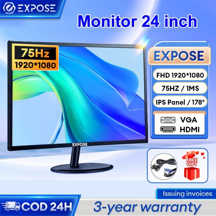 Monitor 24 inch Monitor PC Monitor Gaming 24 inch Panel IPS 75hz Full HD HDMI VGA 1M S 2025 Latest