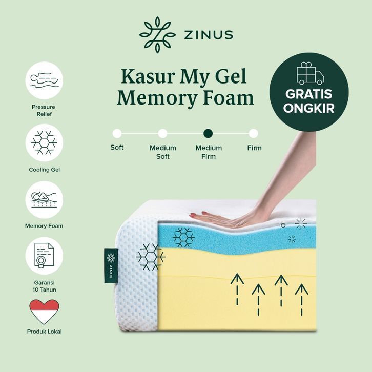 KASUR BUSA SPRING BED ZINUS 180x200 MY GEL COOLING MEMORY FOAM MATTRESS IN A BOX TEMPAT TIDUR NYAMAN TERBARU SNI