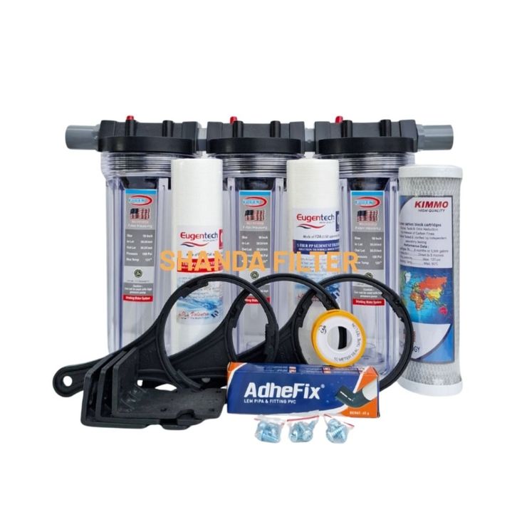 Filter Air Paket EUGEN 3 Saringan Siap Pakai - Clear 10" drat 3/4" - SSC