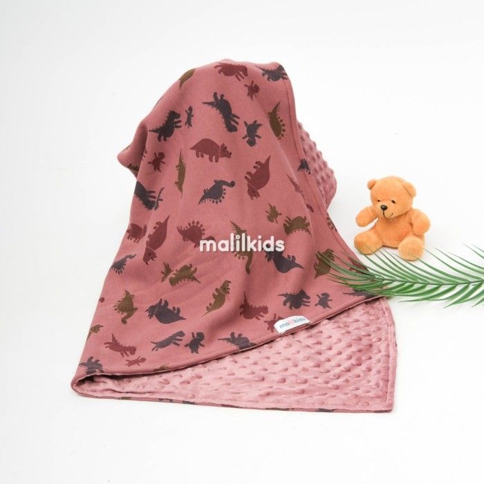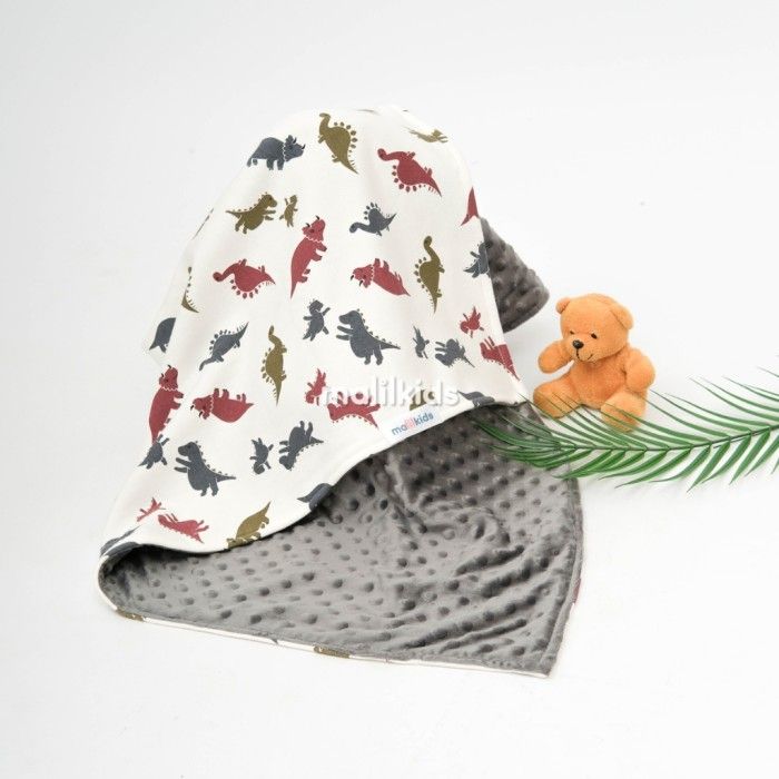 Malilkids Selimut Bayi Reversible Fleece Minky Blanket - Clear Dino