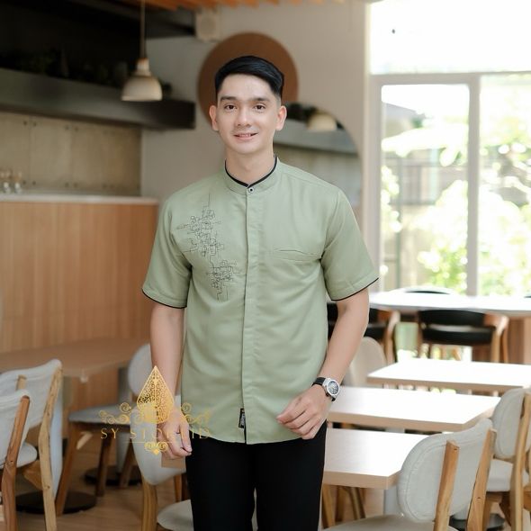 Baju Koko Pria Lebaran Terbaru Warna Burgundy Hitam Putih Sage