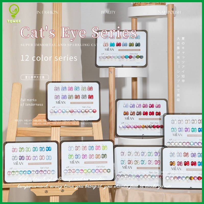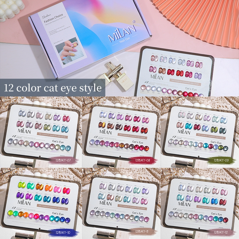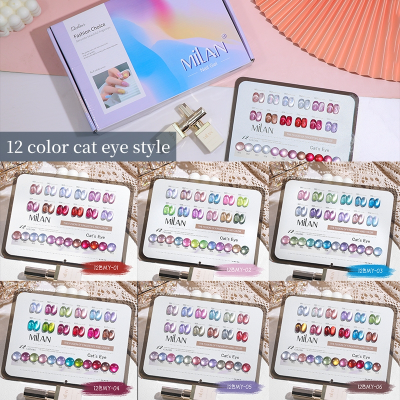 ZC Milan 15ml 12 Warna Cat Eye Gel Polish Set Glitter Tinggi Dekorasi UV Gel Cat Kuku