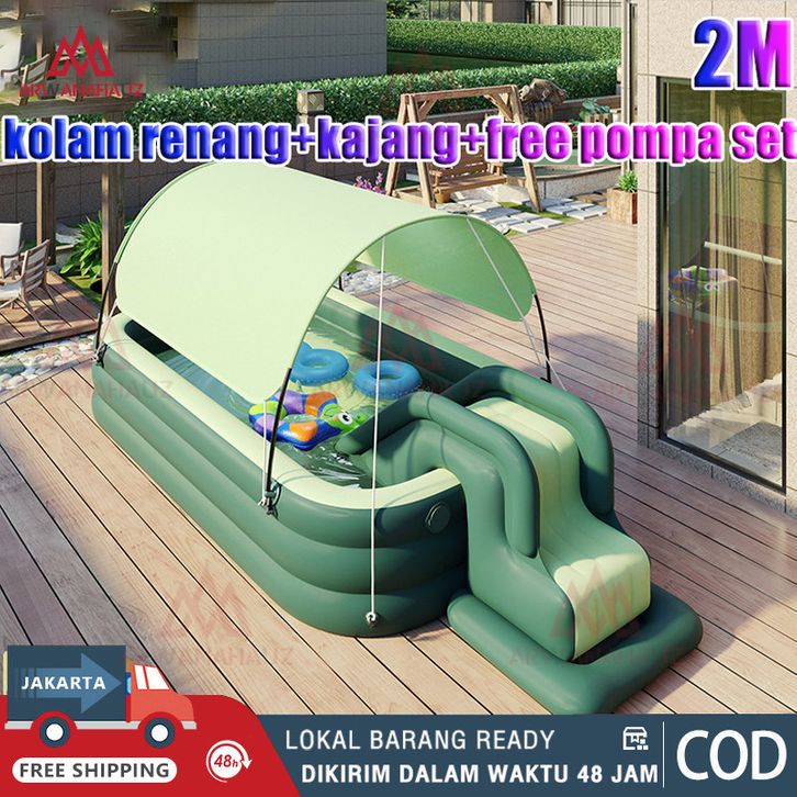 【Hadiah Pompa】 2.1M Perosotan Kolam Anak / kolam renang anak free pompa / Tiup Karet Besar Family Inflatable Swimming Po