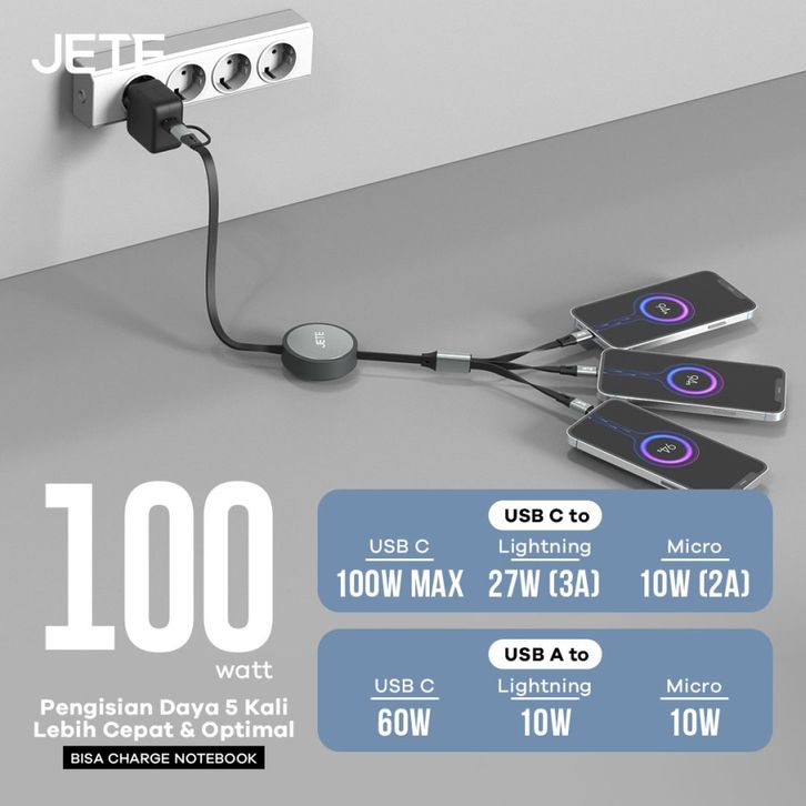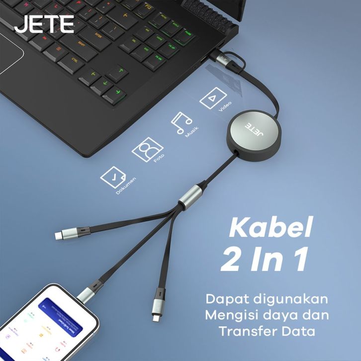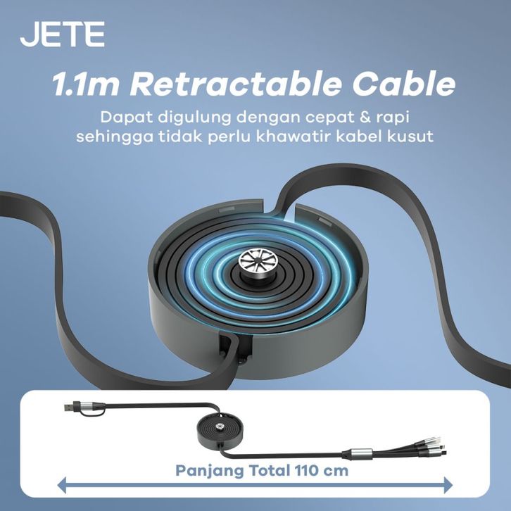 JETE CX17 Kabel Data 100W Fast Charging 5in1 Roll Retractable | Kabel Data Roll 5in1