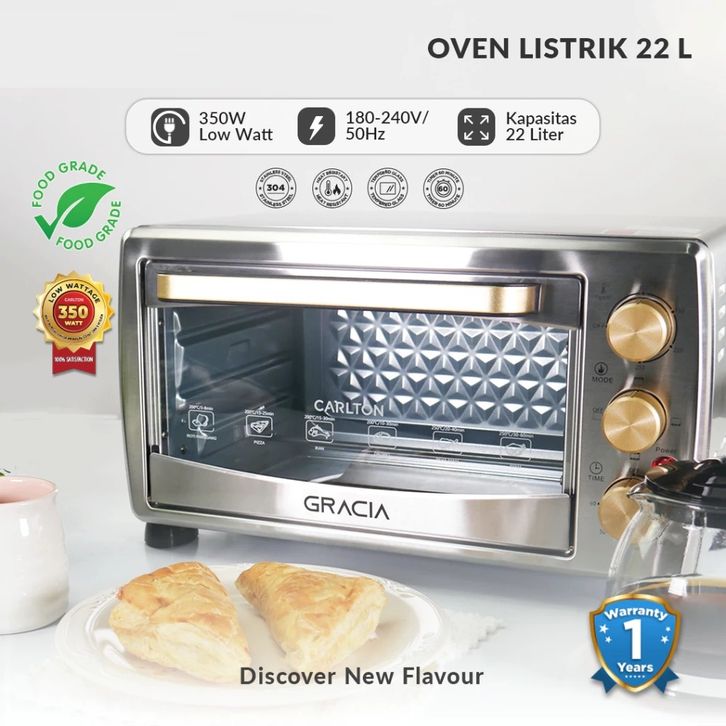 Gracia Oven Listrik 22L - Low Watt Terdapat Lampu Indikator, Grill & Baking