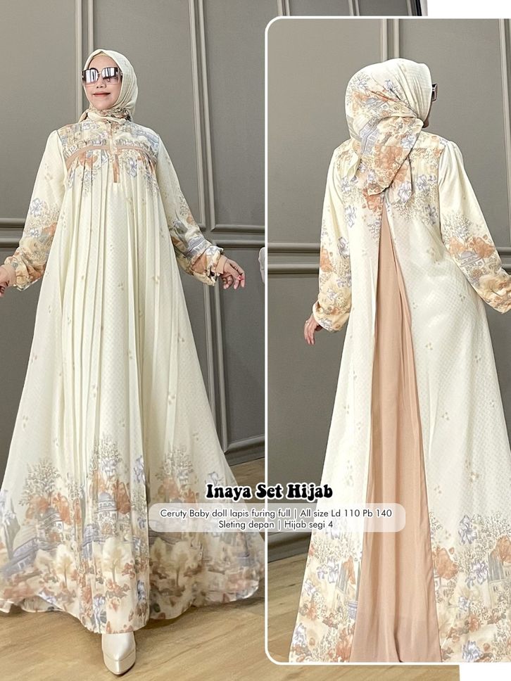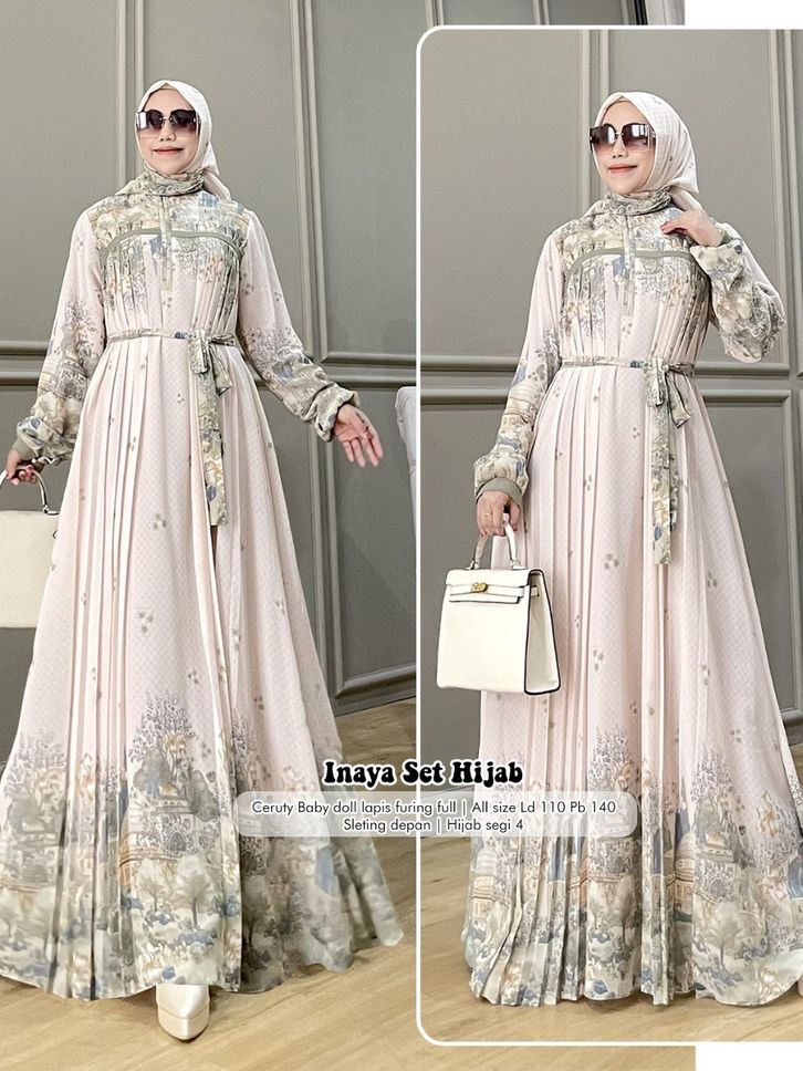 ILYA FS - INAYA Baju Gamis Muslim Set Hijab Model Terbaru Kekinian Bahan Ceruty Ready Seragaman