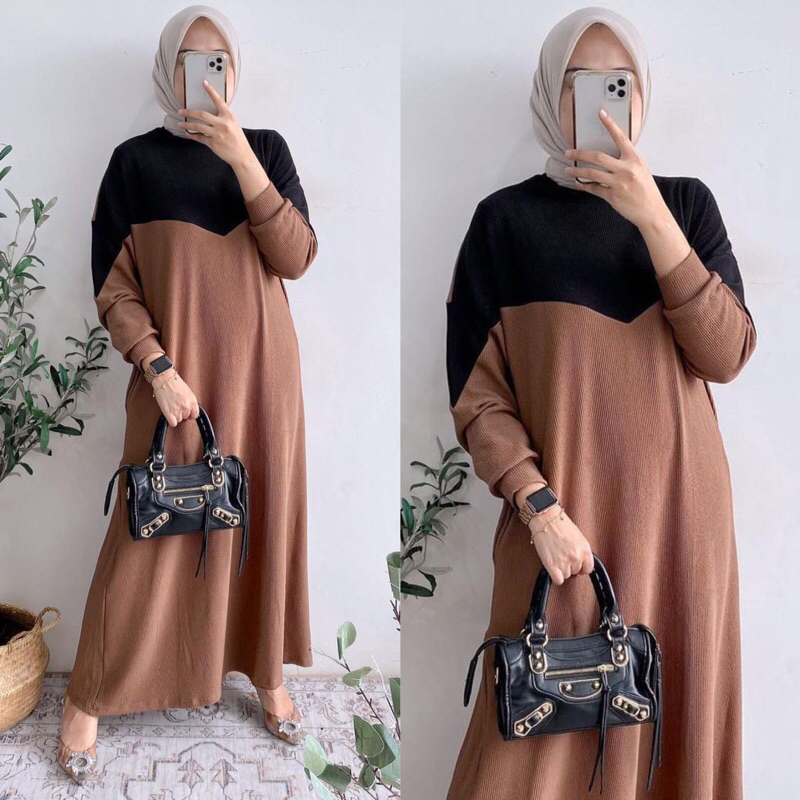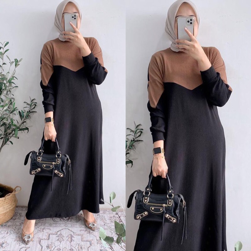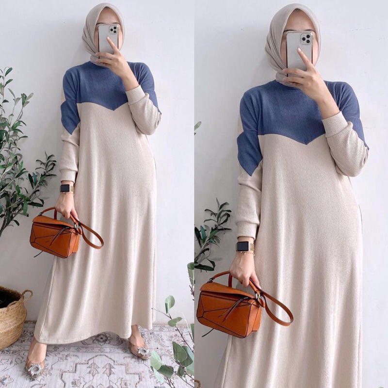 Sheila Dress Kombinasi Crinkle Airflow Amanda Dress Daily