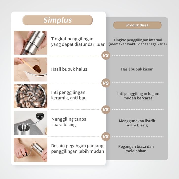 Penggiling Biji Kopi Manual 25g Coffee Grinder Handheld Manual Baja Tahan Karat Simplus