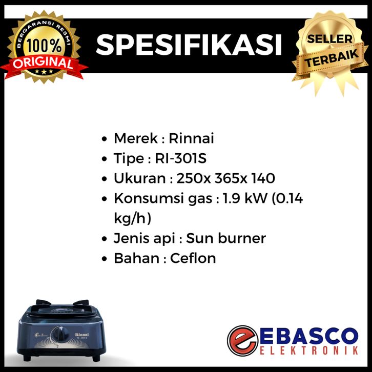 Rinnai Kompor Gas 301 S Tungku Bahan Material Ceflon