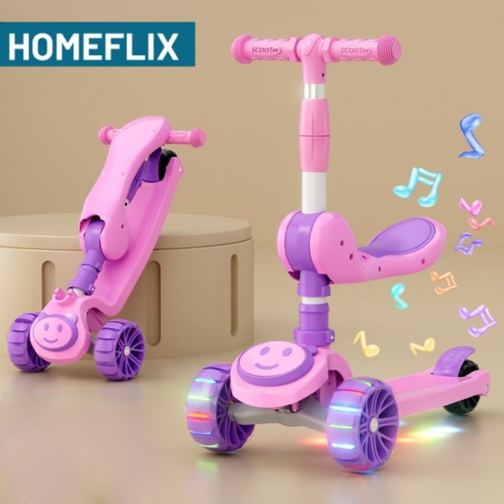 Skuter Anak 3 Roda Otoped Lipat Dilengkapi Kursi, Musik dan Lampu Mainan Anak Perempuan dan Laki-Laki