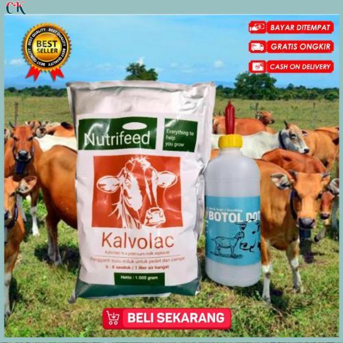 Kalvolac nutrifeed 1kg | Bonus Botol Dan dot - Pengganti Susu Induk Anti Diare Anti Mencret Untuk Sapi Kambing dan Domba