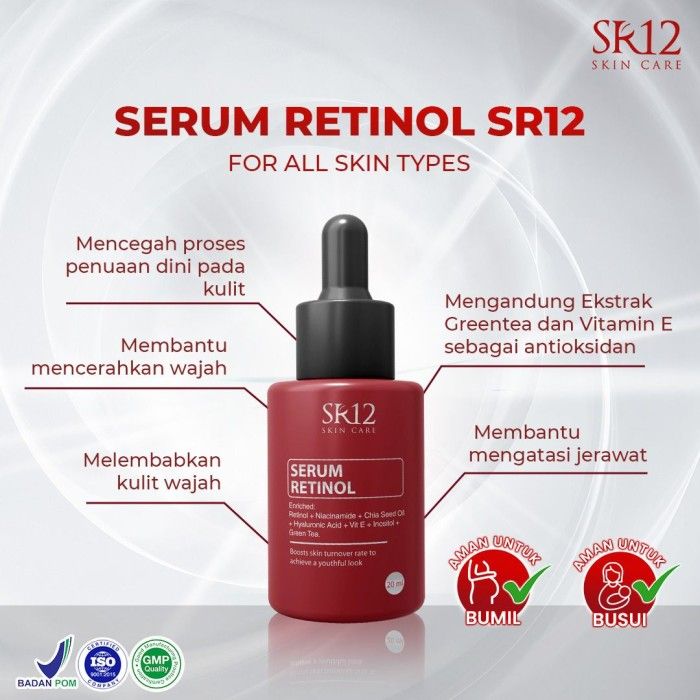 Serum Retinol SR12 BPOM Untuk Wajah Cerah Glowing Awet Muda Bebas Jerawat
