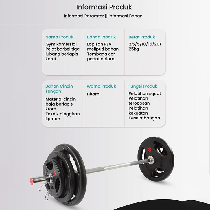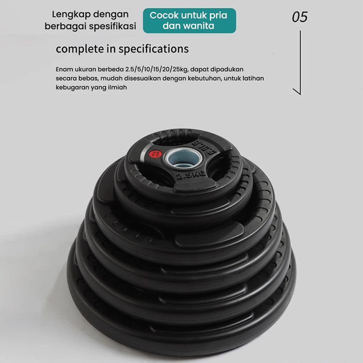 PVC Weight Plate Barbel Dumbell Rubber Cement Plates 5KG 7KG 10KG 15KG Piringan Plat Alat Latihan Beban Barbell Dumbell