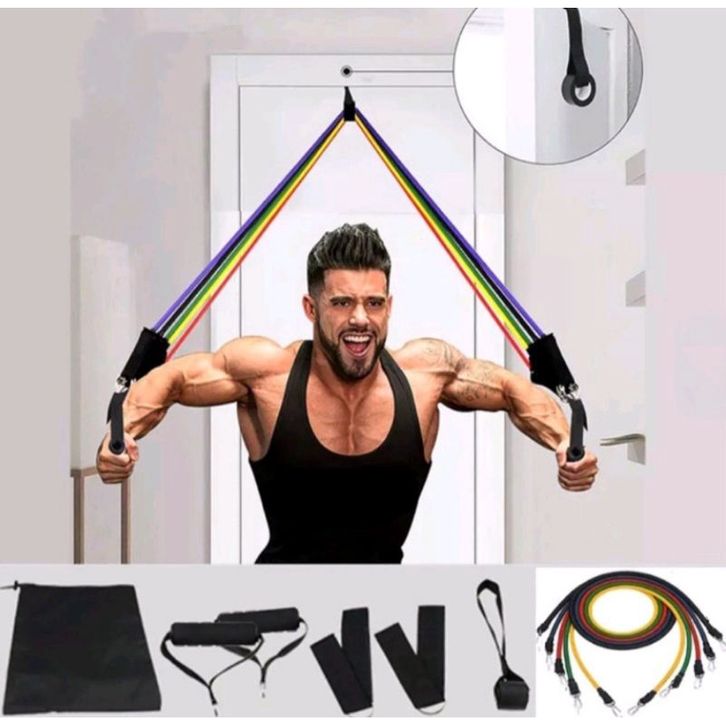 [366SP] 11 IN 1 PRO RESISTANCE BAND SET FITNESS GYM PILATES YOGA