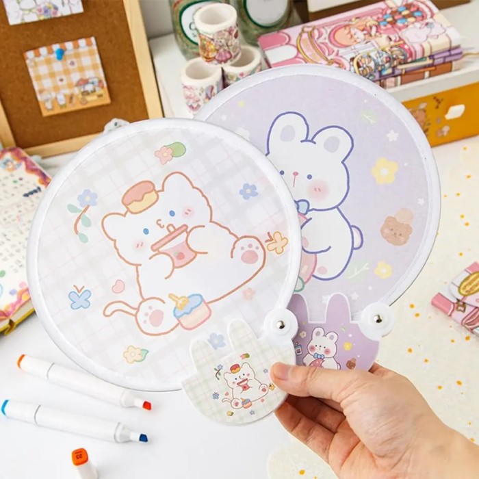 AZ KIPAS TANGAN LIPAT MOTIF LUCU/KIPAS GENGGAM PORTABLE BULAT KARTUN - KIPAS GENGGAM