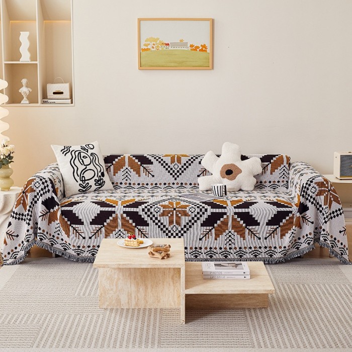 SELIMUT PENUTUP SOFA COVER TUTUP PERABOT ANTI SLIP SARUNG SOFA BLANKET - SPREI_DAUN, 180 X 130
