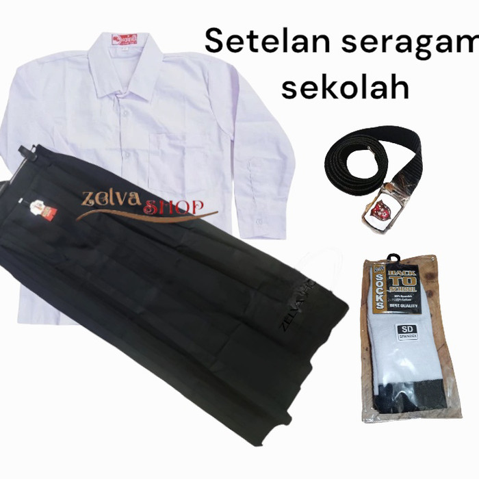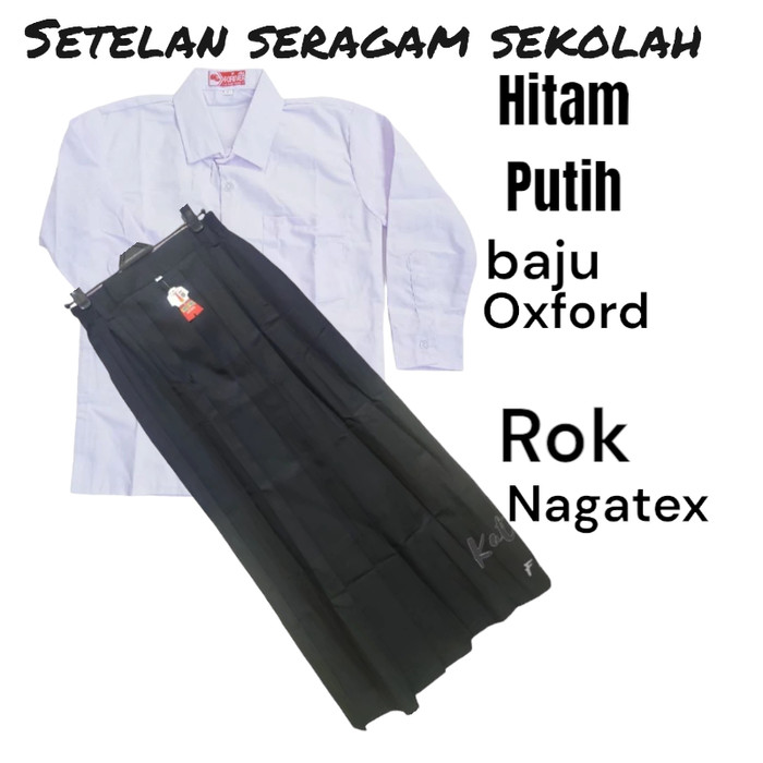 SETELAN SERAGAM SEKOLAH ANAK PEREMPUAN USIA 6-12 TAHUN SET BAJU POLOS PANJANG ROK HITAM - BAJU+ROK PJ, USIA 6 TH