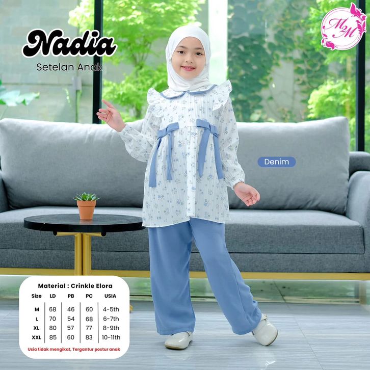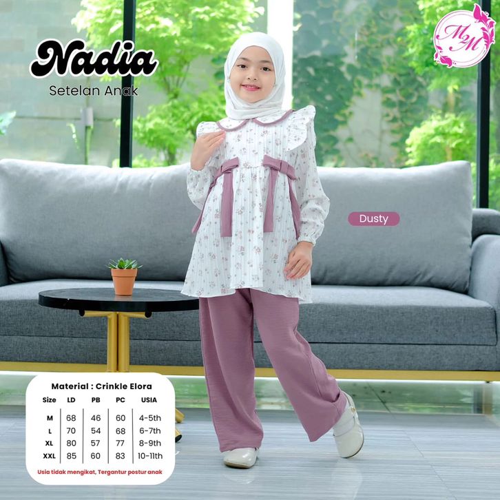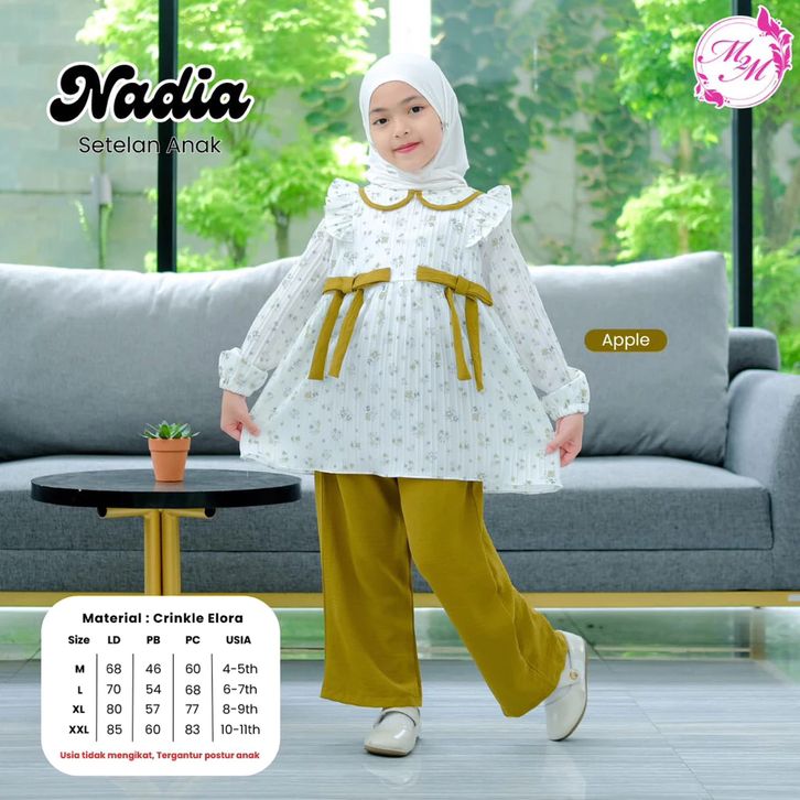 One Set Kids Setelan Celana Anak Perempuan Viral 2026 Baju Lebaran Anak 4 5 6 7 8 9 10 11 Tahun Nadia Pita Besar