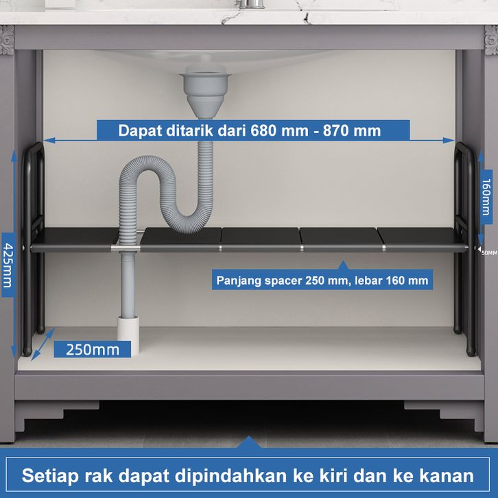 Rak Dapur Stainless Bawah Wastafel – Rak Panci Susun Serbaguna