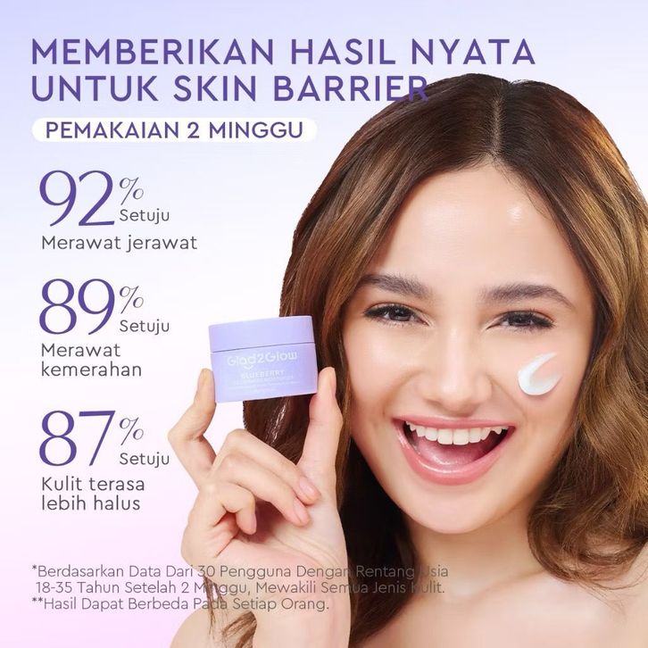 BPOM Glad2Glow Blueberry Moisturizer Cream 5x Ceramide Skin Barrier Repair 30g Pelembab Pemutih Wajah Facial Moisturizer