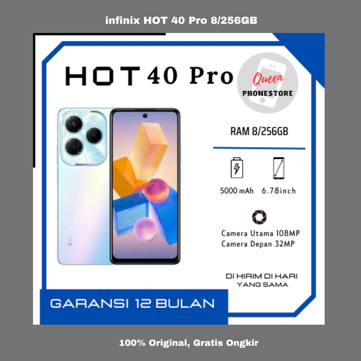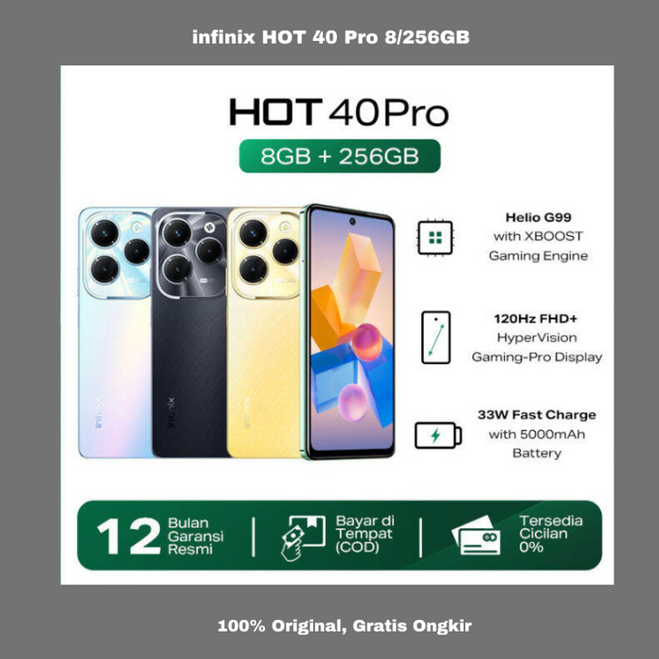 HP infinix HOT 40 Pro 8/256GB CameraFront 32MP, Rear 108MP+2MP+AI Lens bisa NFC Bergaransi Terpercaya