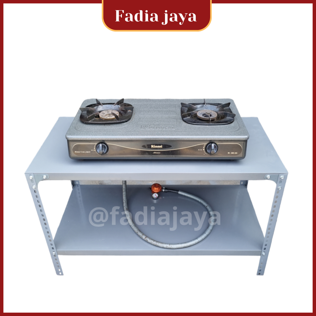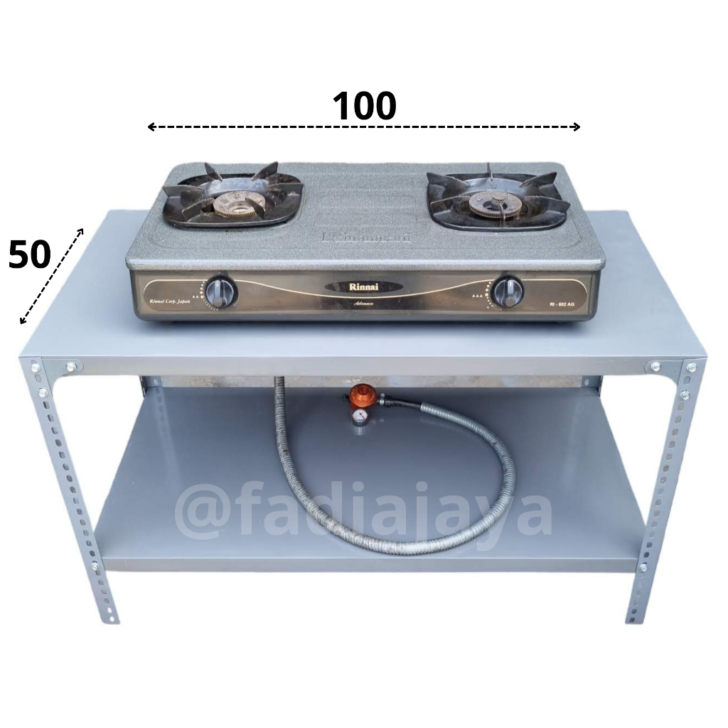 Meja Kompor Gas 2 Tungku Besi Portable Dapur Minimalis Serbaguna Lebar 50
