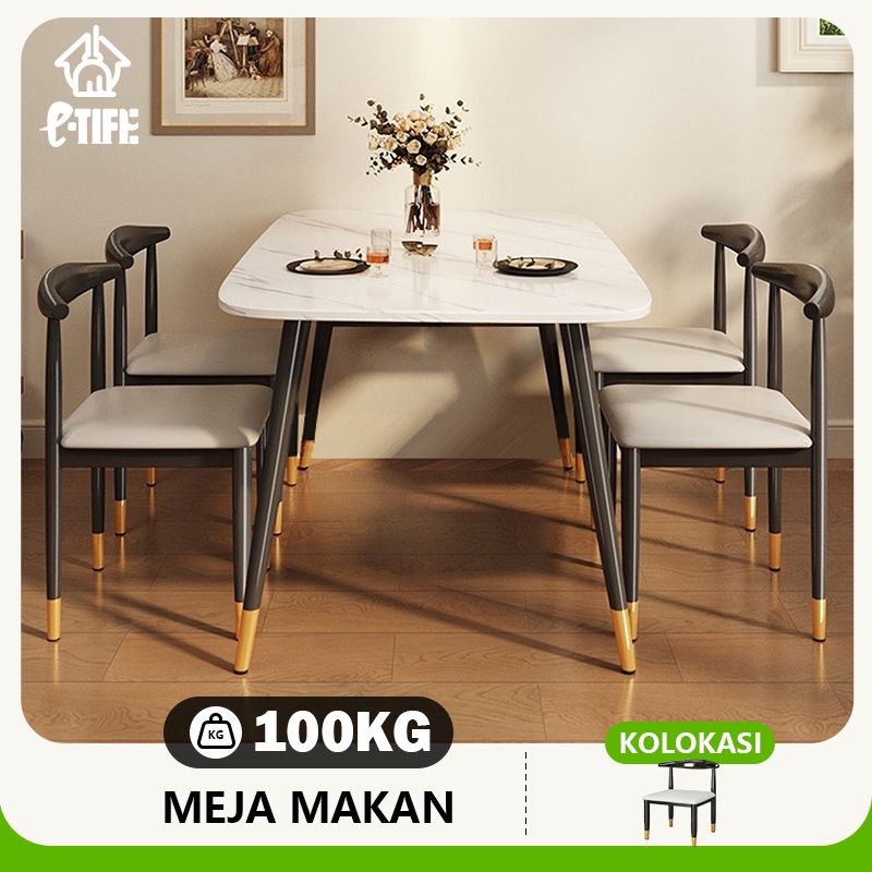 Etife Meja Makan Minimalis Meja Makan Aesthetic Meja Makan Kayu Dengan Sticker Marmer