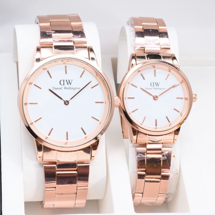 Jam Tangan Wanita & Pria / Couple ICON D4748 Tali Rantai Free Box, Paperbag & Baterai Cadangan