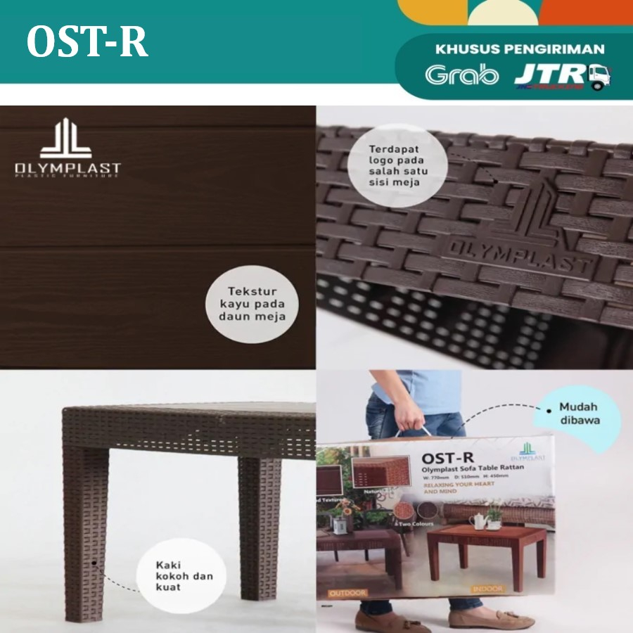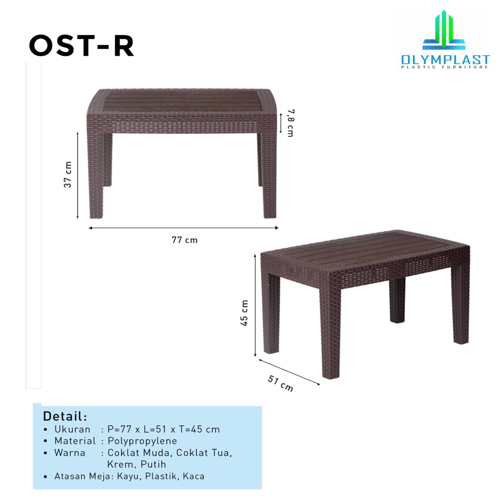 Olymplast Meja Tamu Motif Rattan Plastik | Meja Teras Rattan Plastik | Coffee Table OSTR