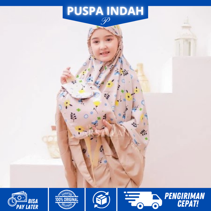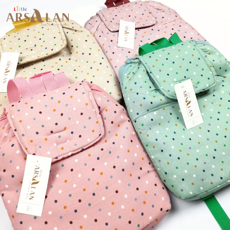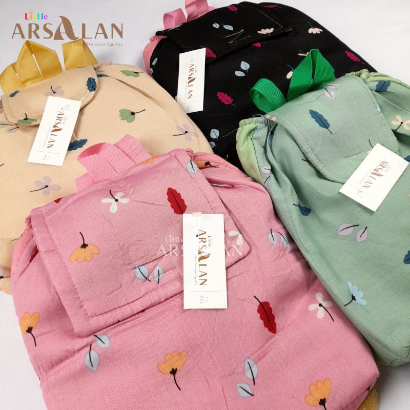 Mukena Anak Pompom Tas Ransel Gendong Tanggung | Mukena Rayon kombinasi Mikro Mukena Anak SD Tanggung | Mukena Arsalan