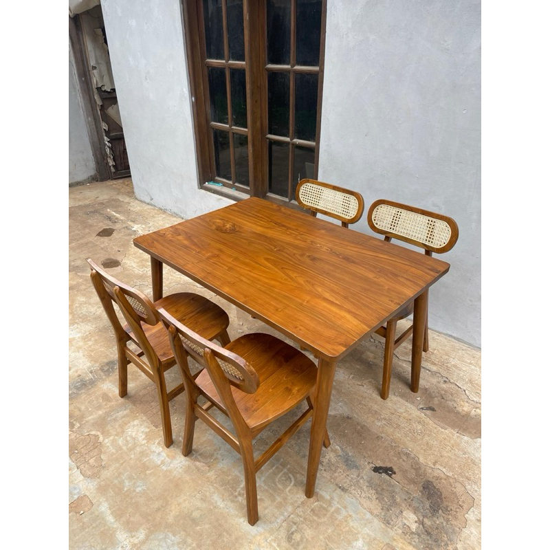 Set Meja Makan Rotan Minimalis, Set Meja Makan Ropan Rotan, Set Kursi Cafe dan Resto Termurah