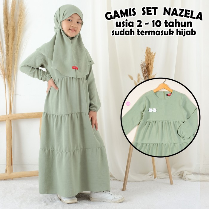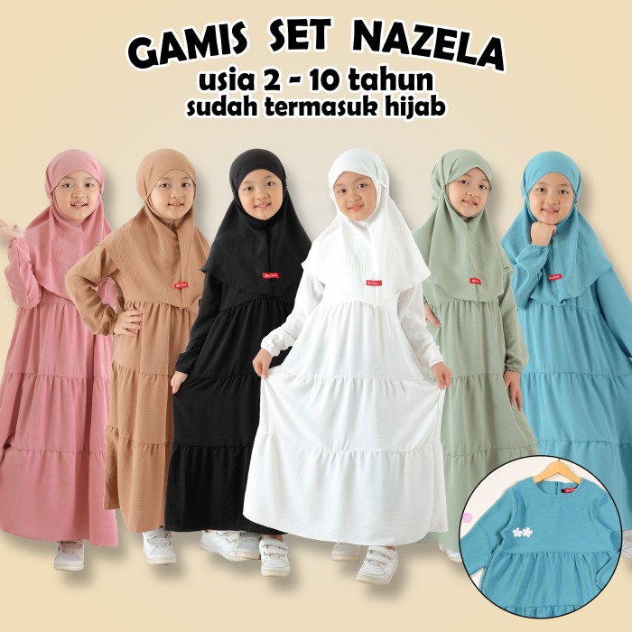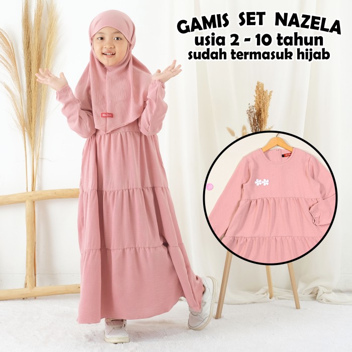 GAMIS ANAK DAN HIJAB 2-10 TAHUN SETELAN GAMIS ANAK ONE SET BAJU MUSLIM - SET GAMIS