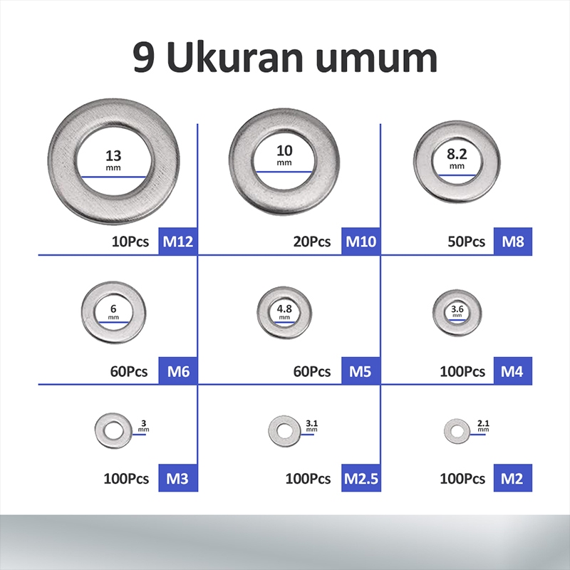 600pcs O Ring Flat Plat Seal Sel Baut Gasket Nut Washer Plat Spacer Metal 304 Stainless Steel