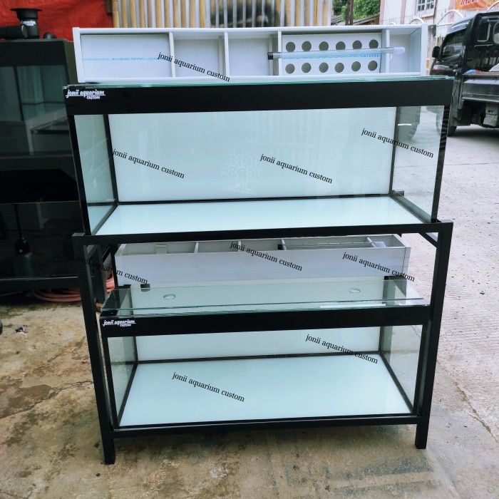 aquarium 100x40x40 8/5mm 2 susun full stiker oracall putih