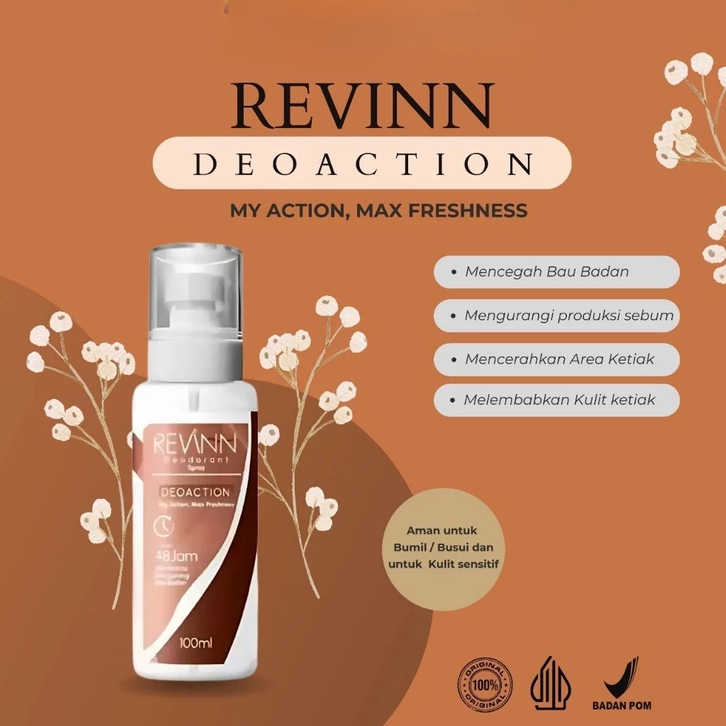 REVINN DEOACTION DEODORANT SPRAY - ORGANIK PENGHILANG BAU BADAN KETIAK ALAMI