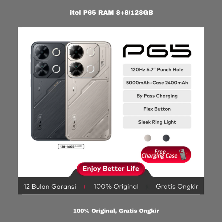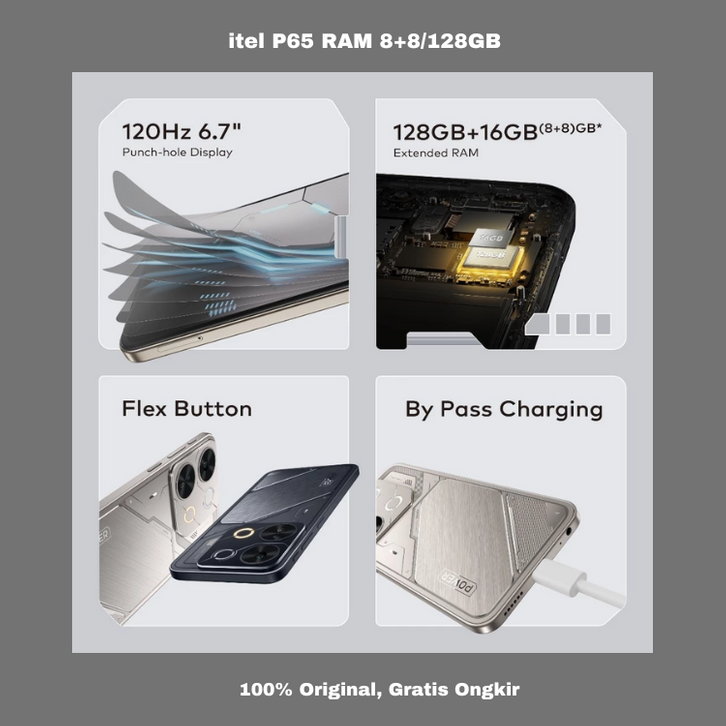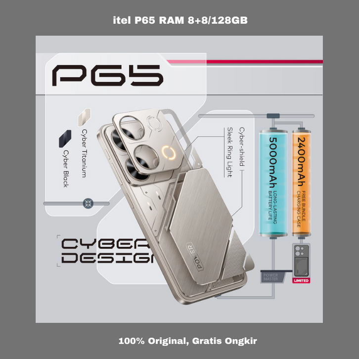 HP itel P65 RAM 8+8/128GB - Cyber Design with Sleek Ring Light - 120hz 6.7" Punch Hole Display - Flex Button