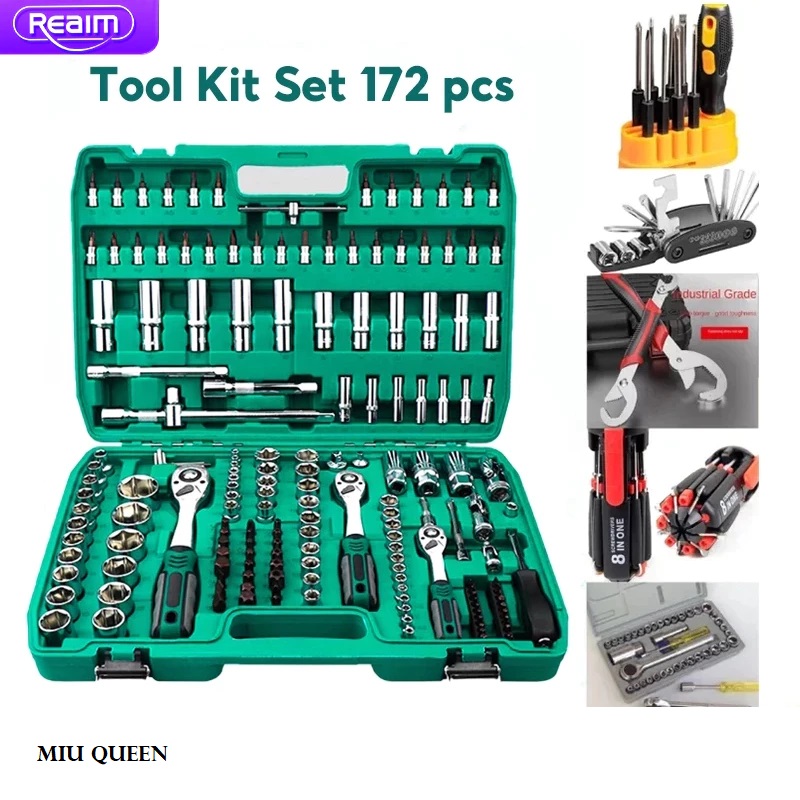 Reaim Set Kunci 1/2 inchi Sok Kunci Shock 172 pcs Mobil Motor Lengkap Socket Tool Kit set Pas Ring