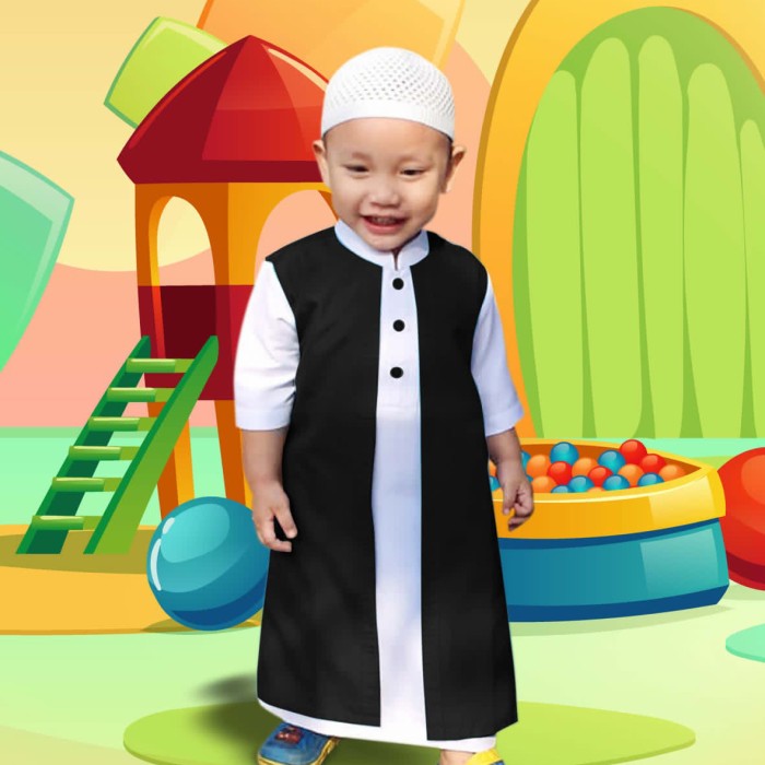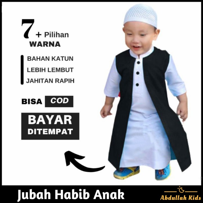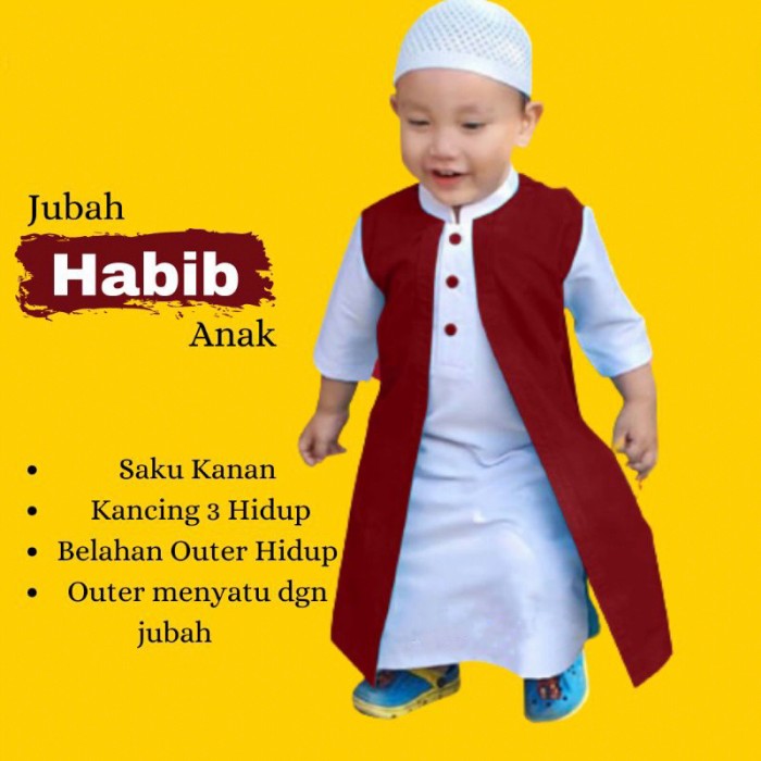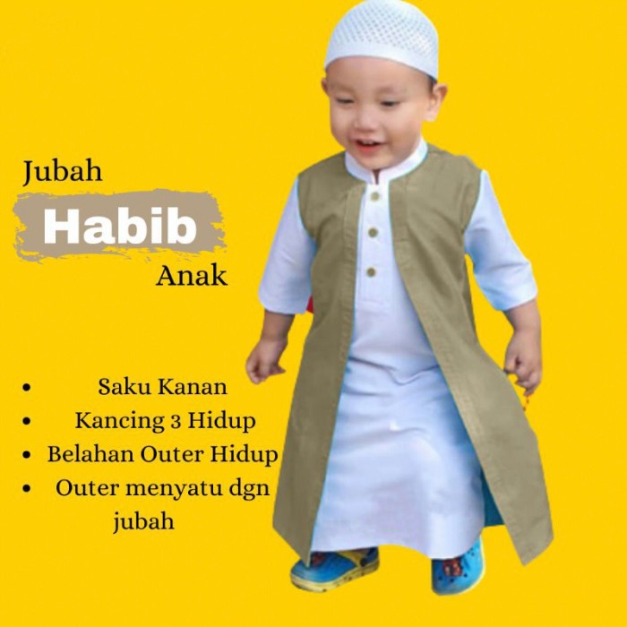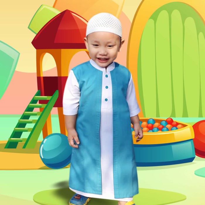 GAMIS JUBAH ANAK / GAMIS ANAK LAKI LAKI HABIB DALAMAN + OUTER 1-13 TAHUN - BIRU MUDA