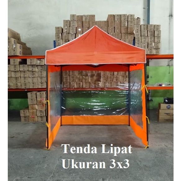 Tenda Lipat 3x3 + Dinding Mika – Tenda Jualan Bongkar Pasang Fullset Siap Pakai