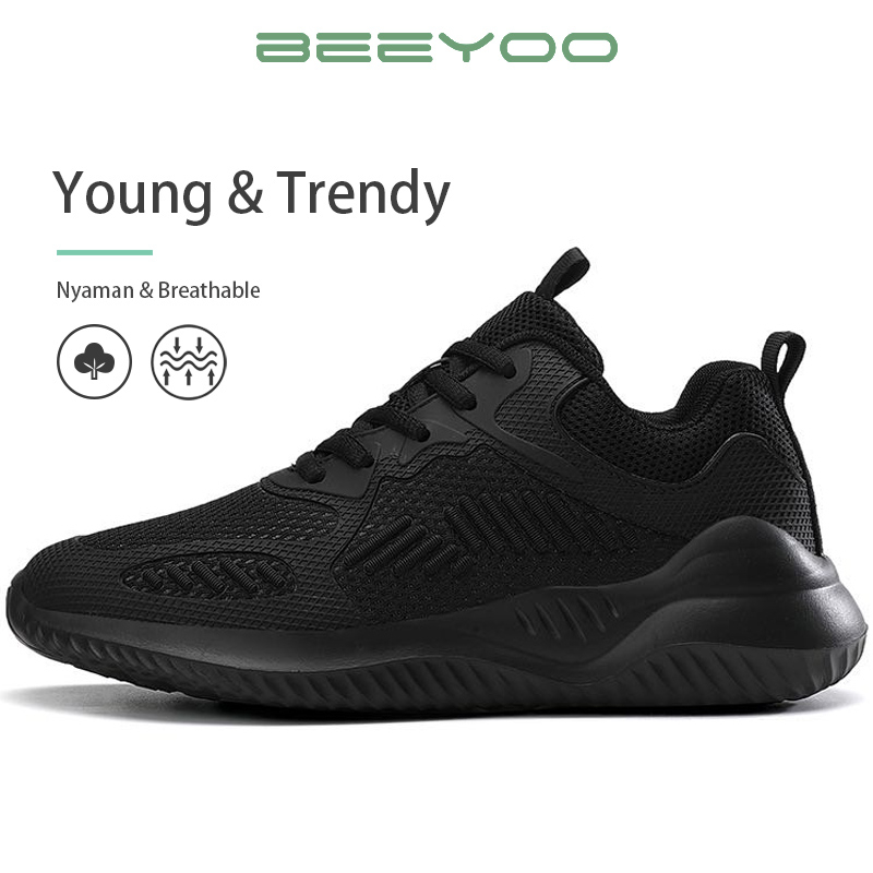 SALE Beeyoo Sepatu Sneakers Wanita Unisex Sport Hitam Korea Sekolah Kets Cewek Sport Shoes bahan berkualitas murah WK706