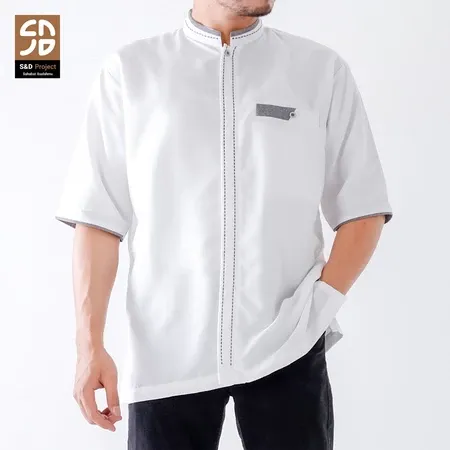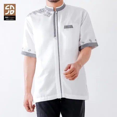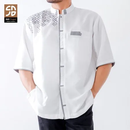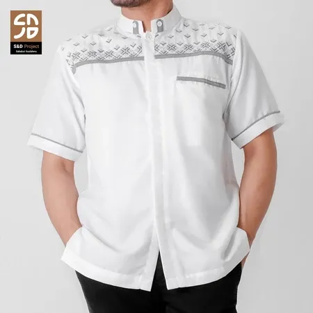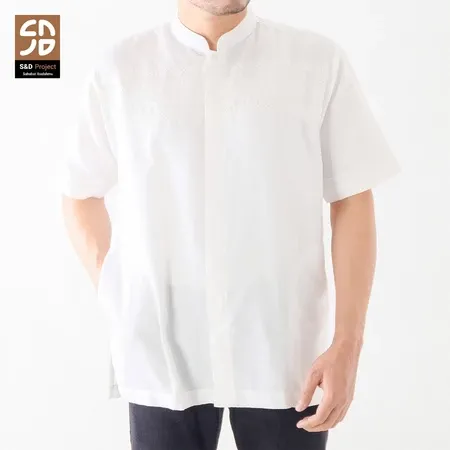 S&D Project Baju Koko Polikatun Bordir Lengan Pendek S M L XL 2XL 3XL 4XL - Seri 20 Putih Tulang