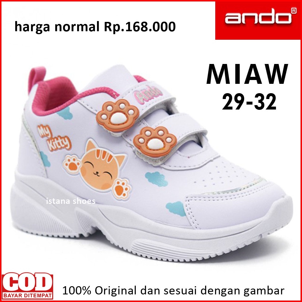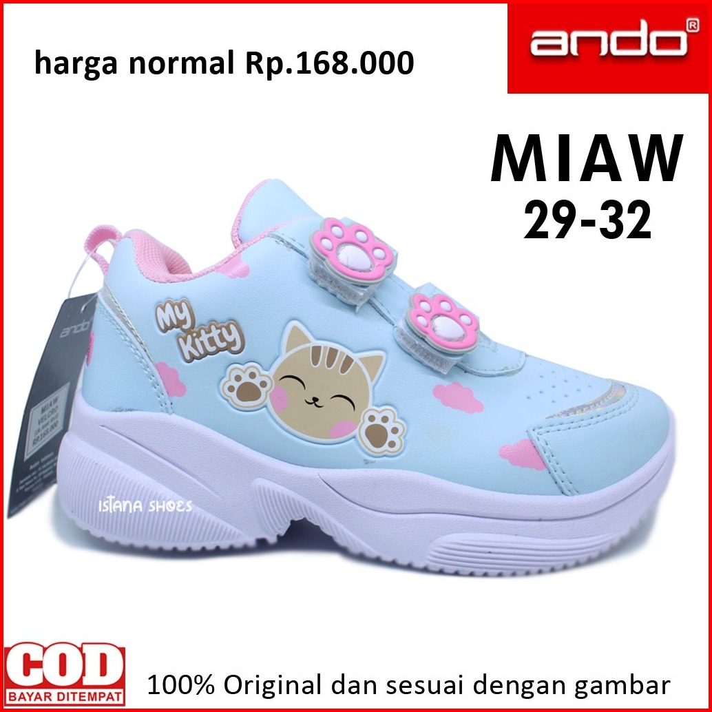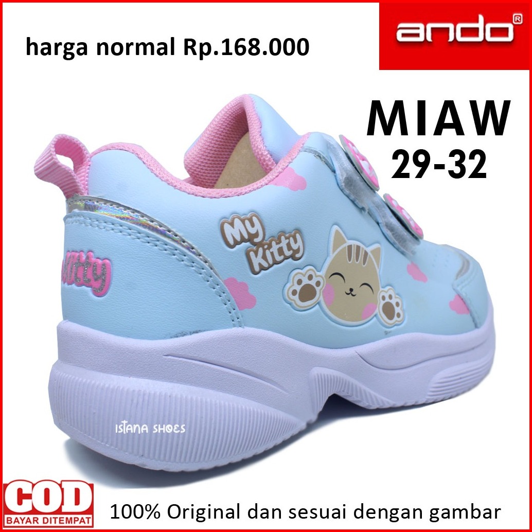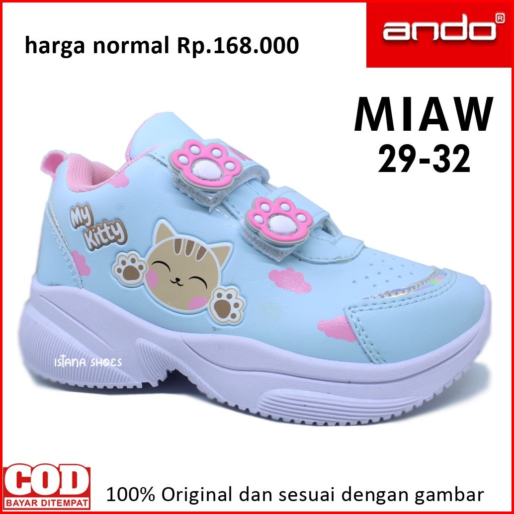 Sepatu Sekolah Anak Perempuan Paud Tk Sd Usia 3 4 5 6 7 Tahun Ando Miaw Biru Langit Pink Snekaers