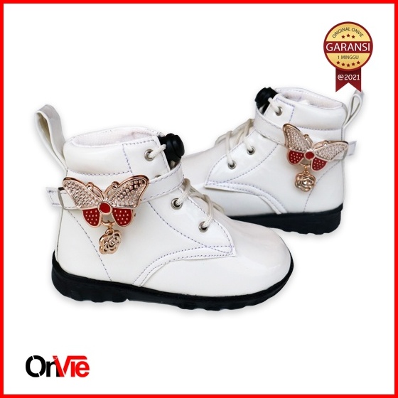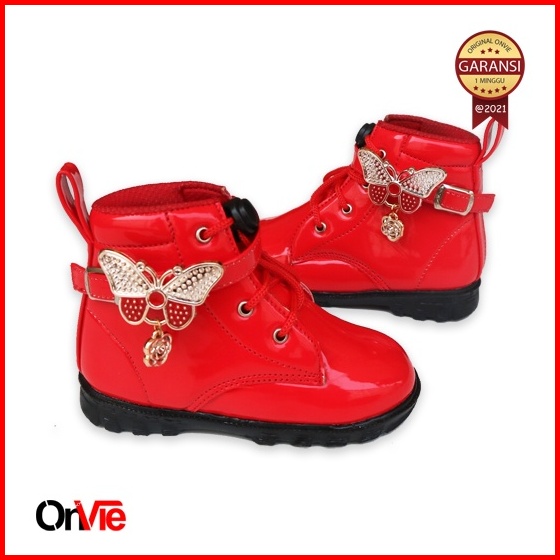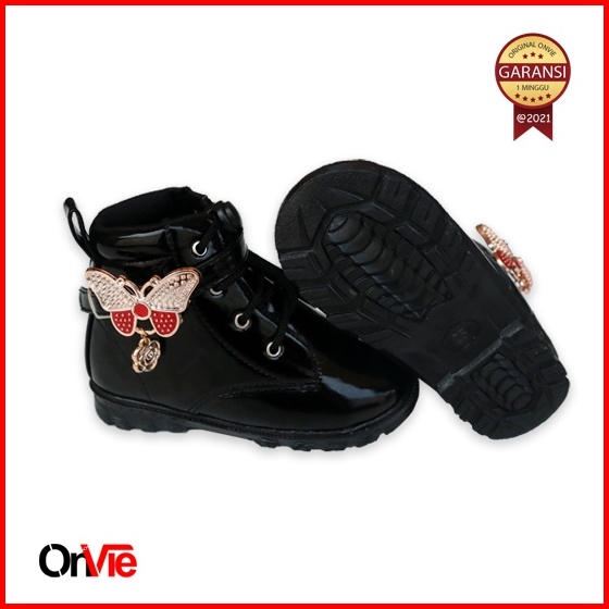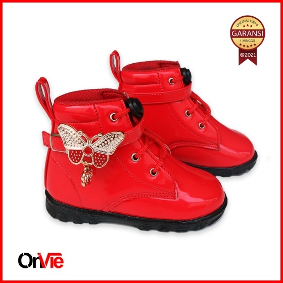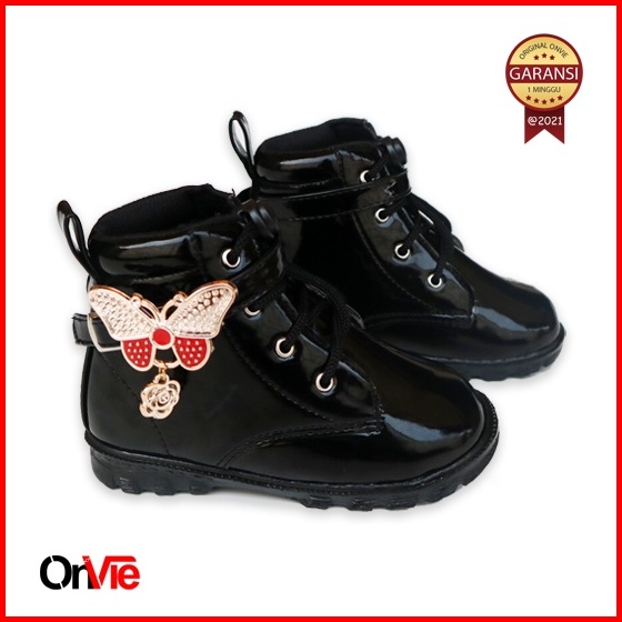 Sepatu Boots Anak Perempuan Glossy Motif Kupu-kupu Sepatu Pesta Formal Onvie